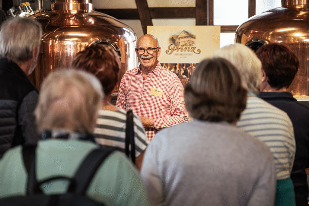 Tauchen Sie von Zuhause aus in die Welt der Destillation ein und entdecken Sie die Kunst des Schnapsbrennens auf eine völlig neue Weise. Die Online-Führung der Fein-Brennrei Prinz kombiniert Fachwissen mit einer exklusiven Verkostung: Sie erhalten eine Degustationsbox mit einer Auswahl erlesener Spezialitäten direkt nach Hause geliefert.